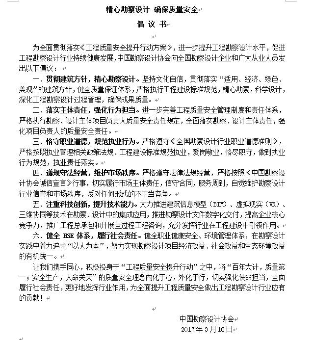 提升工程质量安全水平倡议书