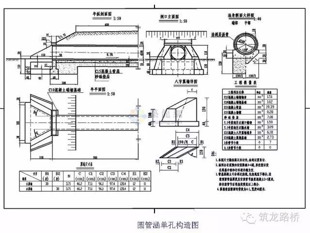 涵洞主要由洞身、基础、端墙和翼墙等构成。经常有人问,涵洞的施工图怎么看?八字墙的结构具体是怎样的?垫层和基础到底有多少公分?看会涵洞的图纸确实需要一定的空间想象力,别担心,看完下面这些你就会啦!