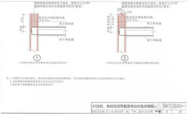 ①了解框架边柱,角柱.顶等截面伸出时的锚固要求及箍筋设构造要求。