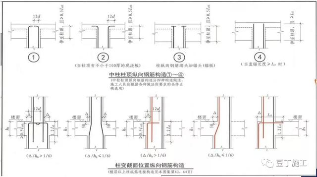 ①了解中柱顶纵筋构造。
