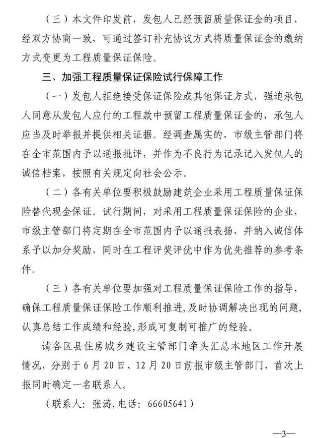 自即日起,在全市房屋建筑和市政工程承发包活动中,承包人可以根据自身情况,自愿选择工程质量保证金、保证保险、银行保函任一形式作为工程质量保证,发包人不得以任何理由拒绝或限制使用。