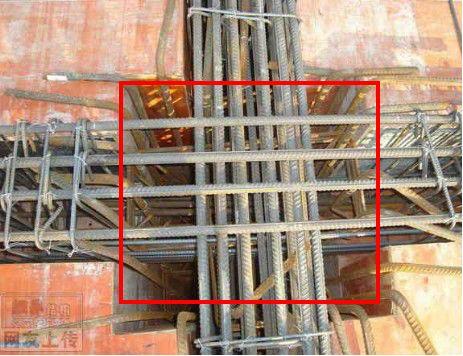 2)框架柱与梁交接处的加密箍往往会少放1~2个,有的只有外箍而没有内箍。