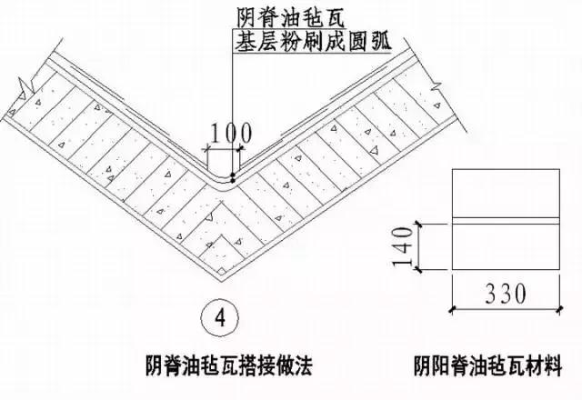 2)屋面阴、阳角线应保持顺直,所有屋面阴、阳屋脊线处均应做成圆弧状,并保持平滑。