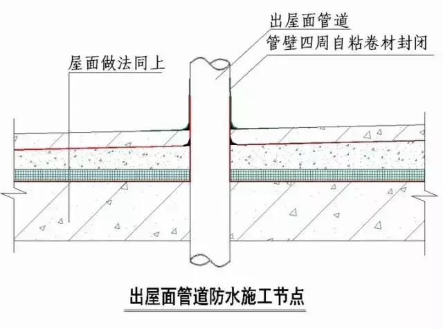 6)出屋面管道及烟气道与屋面交接处作加固处理,防水按程序同步施工。