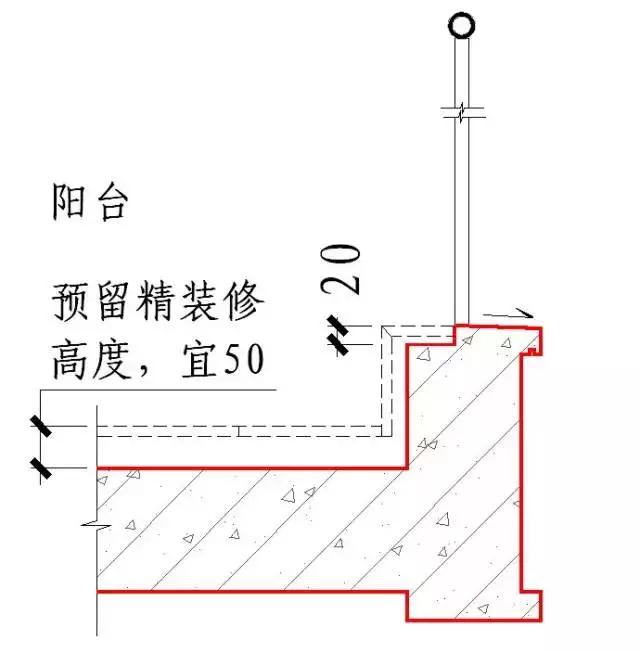 2)设置阳台栏杆高度时,要预留出精装修饰面高度,在精装修完成地面计算栏杆高度。