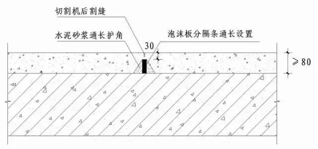 2)地下车库找平层地面伸缩缝用泡沫板分隔,板上部预留30-50mm浇筑混凝土;