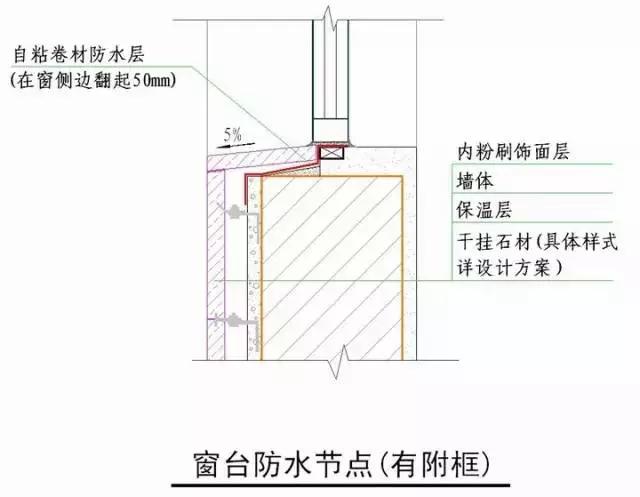 注:室外花岗岩窗台及线脚基层水泥砂浆粉刷坡度大于10%。
