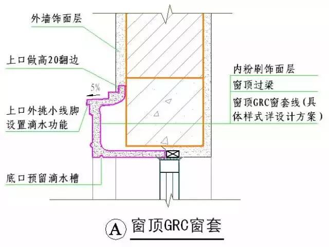 1)所有GRC装饰线必须保证上平面有坡度,下有滴水功能;