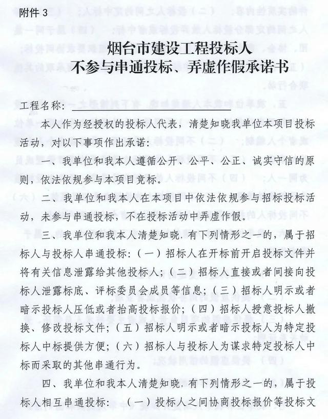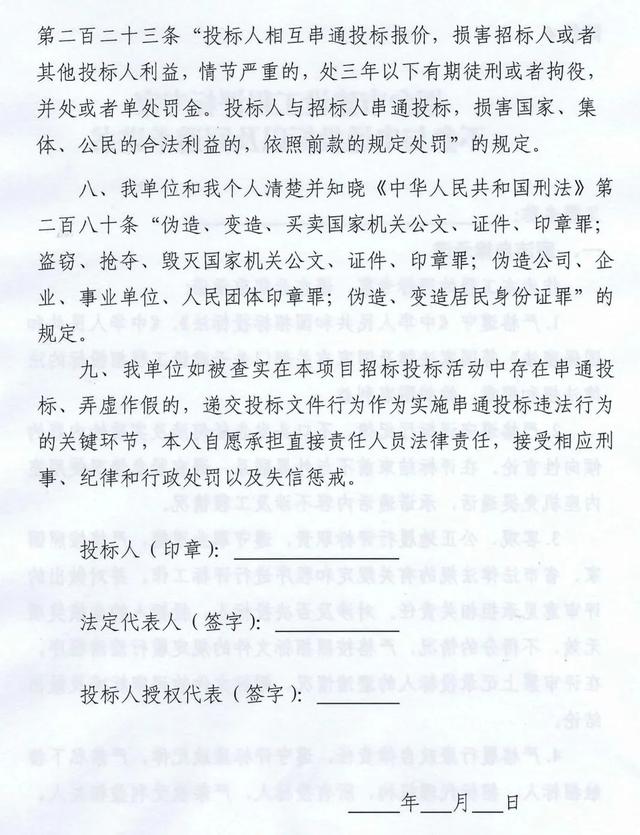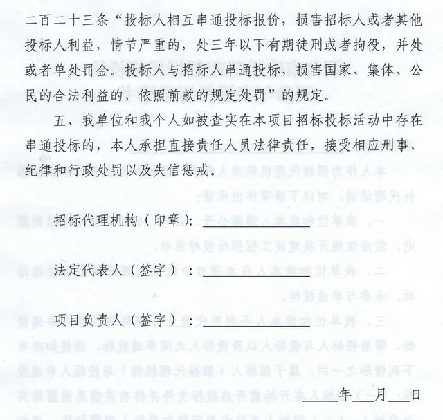 2019年6月15日起,投标人在递交投标文件时,投标人代表须当场签署《不参与围标串标承诺书》。