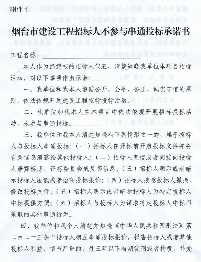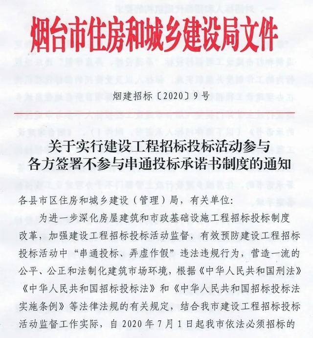 通知要求,自2020年7月1日起,招投标活动参与各方签署不参与串通投标承诺书制度: