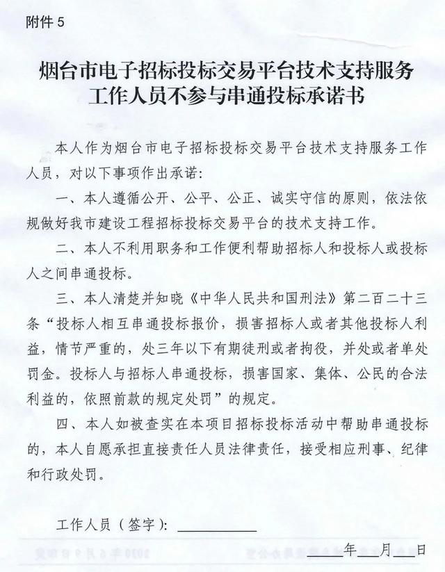 公共资源交易部门负责人技术支持人员签署保存“承诺书”,不签署的,不得参与相关工作。