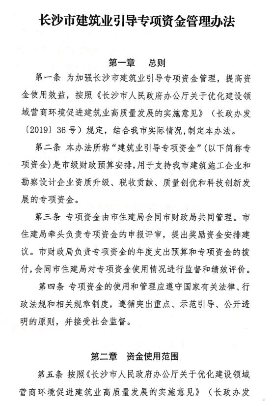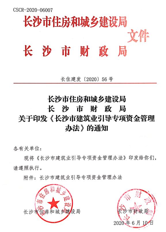 6月10日,长沙市住建局联合财政局印发《长沙市建筑业引导专项资金管理办法》。