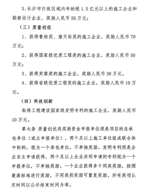 获得国家级优质工程奖的施工企业,奖励50万元;