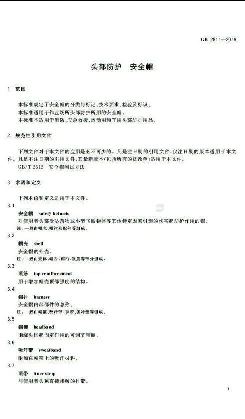 相比较于旧版GB2811-2007,新版安全帽标准GB2811-2019《头部防护 安全帽》做出了如下修改: