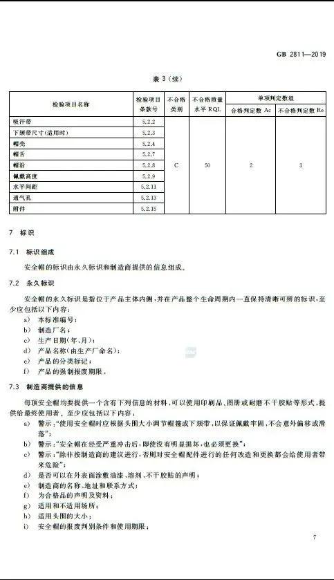 新版的GB2811-2019规定,安全帽的永久标识位于产品主体内侧,并在产品整个生命周期内一直保持清晰可辨的标识,至少应包括以下内容: