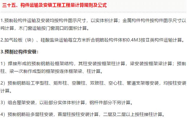 d、预制混凝土柱按设计图示尺寸以体积计算,不扣除构件内钢筋、预埋铁件所占体积,依附于柱的牛腿,并入相应柱身体积计算。