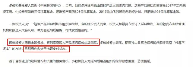 以现在独山的情况,本金肯定是还不上的了。据《中国新闻周刊》报道,投资人来自全国各地,有的家庭因为产品违约造成生活困难。