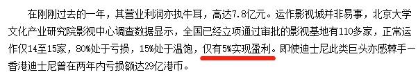 据北京大学文化产业研究院影视中心调查数据显示,全国已经立项通过审批的影视基地有110多家,正常运作仅14至15家,80%处于亏损,仅有5%实现盈利。