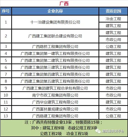 注:各省、自治区、直辖市特级企业名单与上述多特企业名单有重复,排名不分先后。