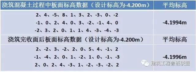 情况分析:混凝土浇筑过程中测量的标高与混凝土终凝稳定后的标高相差不大。