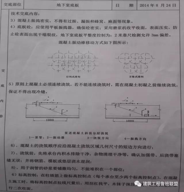 情况分析:混凝土浇筑的各项技术交底完备,交底内容符合规范及施工现场的实际要求。且工人对于混凝土浇筑过程中的各种注意事项也较清楚。