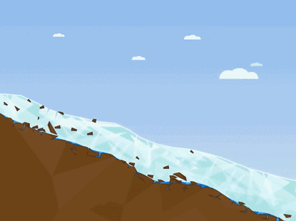 极地或高山地区地表上多年存在并具有沿地面运动状态的天然冰体。冰川多年积雪,经过压实、重新结晶、再冻结等成冰作用而形成的。它具有一定的形态和层次,并有可塑性,在重力和压力下,产生塑性流动和块状滑动,是地表重要的淡水资源。国际冰川编目规定:凡是面积超过0.1平方千米的多年性雪堆和冰体都应编入冰川目录。
