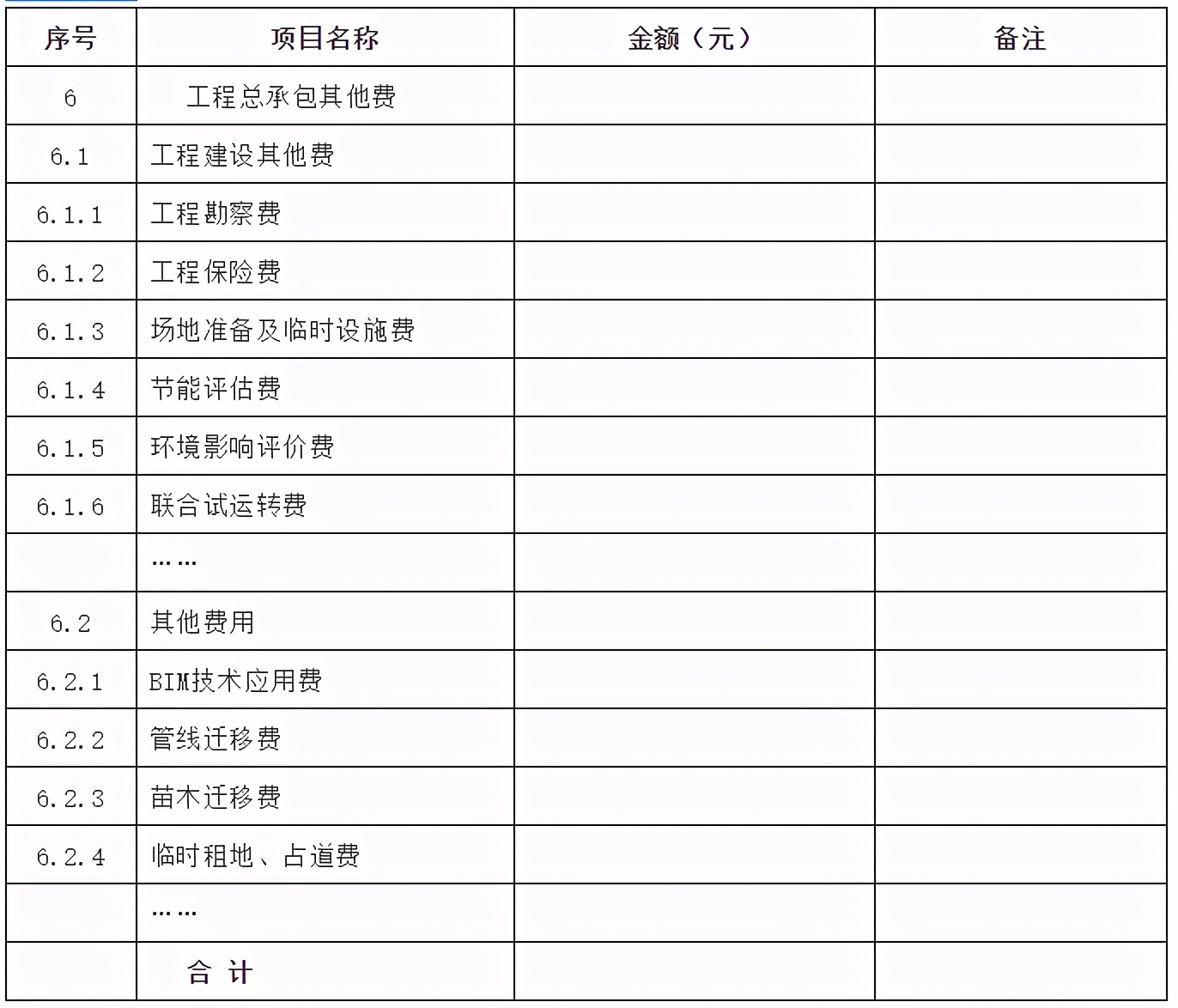 (三)其他费用。指项目建设过程中需由工程总承包单位实施,但前述费用中未包括的费用,如BIM技术应用、管线及苗木迁移等费用。