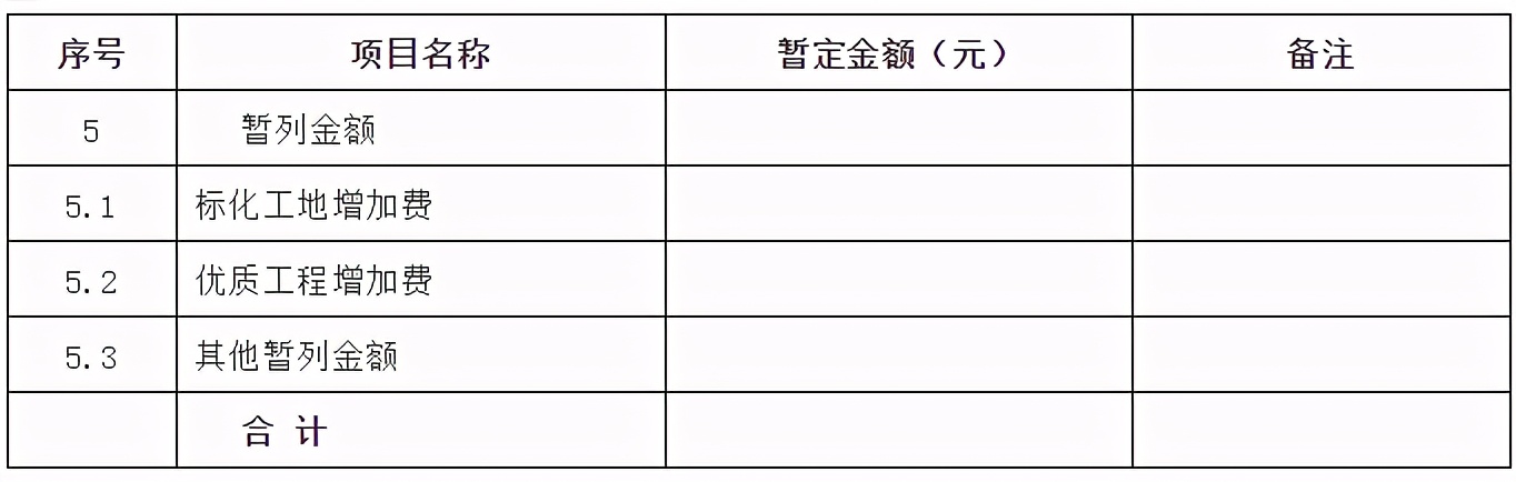 (五)暂列金额:具体金额由招标人给定并计入合同价。其中,标化工地和优质工程暂列金额根据我省建设工程计价规则有关规定按要求等级对应费率计算,其余费用根据项目实际设置,不高于工程设计费、设备购置费、建筑安装工程费之和的5%确定。