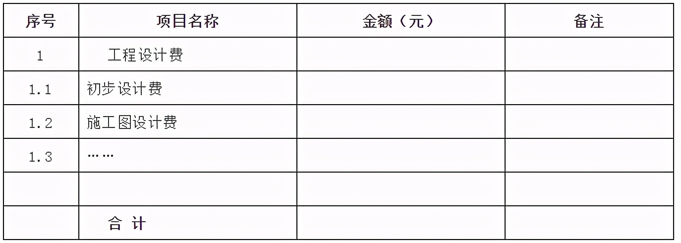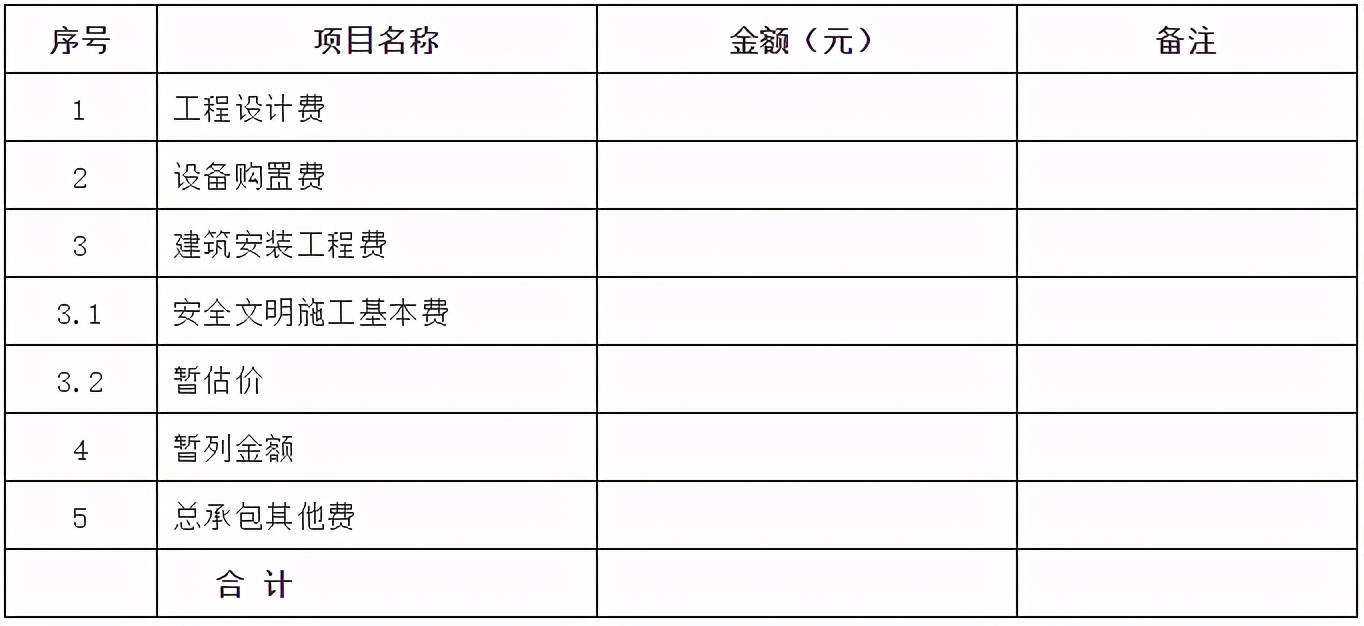 注 根据招标文件的设计工作内容,投标人认为需要增加的费用项可自行添加,并列明该项目的名称及金额,一切在报价时应报未报的项目均被视为已包括在报价金额内。