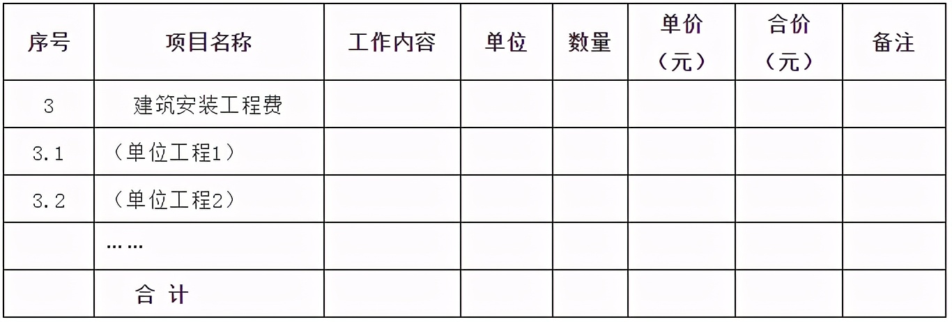 注 根据招标文件的工作内容,投标人认为需要增加的费用项可自行添加,并列明该项目的名称及金额,一切在报价时应报未报的项目均被视为已包括在报价金额内。