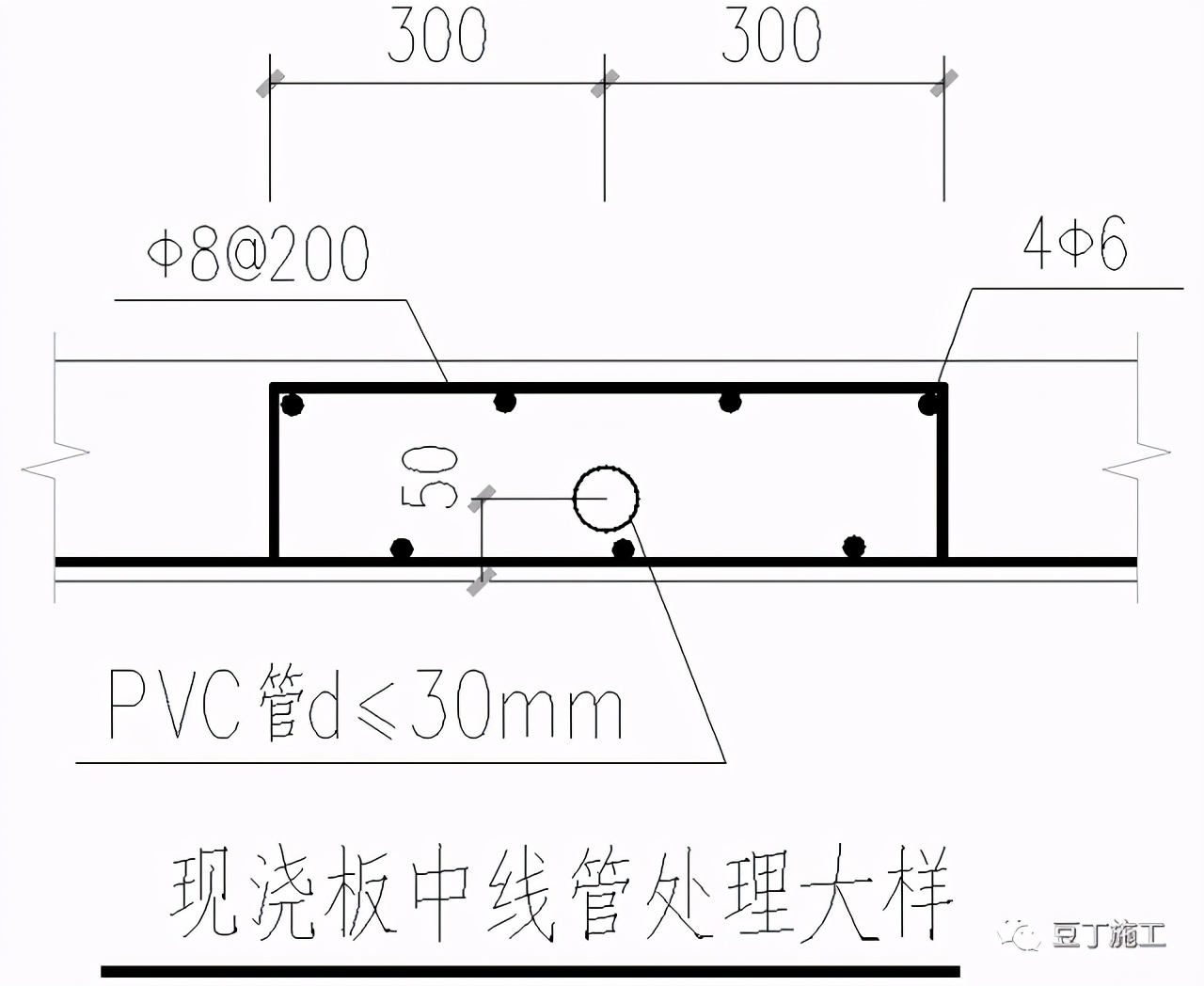 9)现浇板中管线处理大样(管线布置祥电施图):