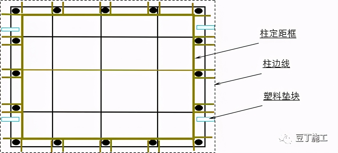 保护层采用成品塑料卡,在柱子模板合模之前,按照竖向间距500mm卡在柱角位置,水平方向按照400mm设置。