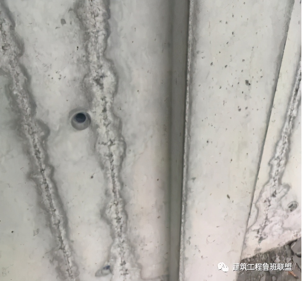 铝模板拆模后,拼缝处漏浆严重导致蜂窝麻面,严重影响观感。