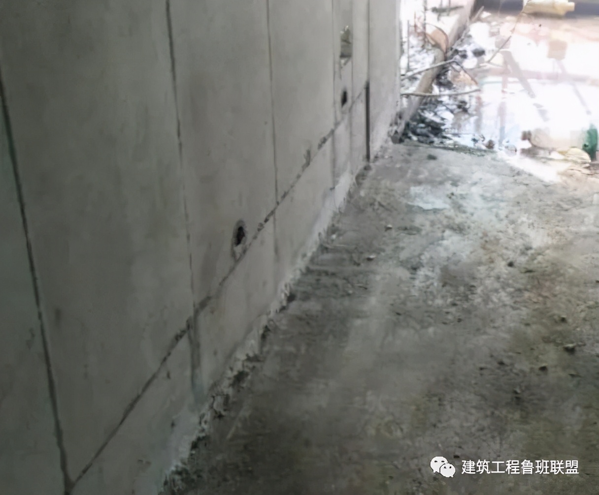 墙柱根部混凝土浇筑时漏浆,导致成型后烂根。