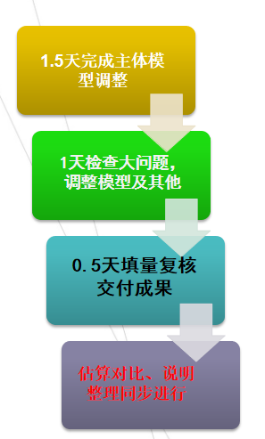 1. 第三次控制价调整,时间更是缩短为两天,因为之前超估算较多,整体费用一直没有降到估算内,第三版的图纸推翻了原来所有的内容,整个需要重新计量,又由于时间紧迫,甲方需要在2天之后挂网招标,在各种压力和大量工作量的强压之下,询匠团队马上把团队人员进行了梳理,除了有2名人员没有办法参与之外其他人员克服困难愿意一起奋战2. 土建和安装人员根据项目专业特点,采取了抓大放小、确保清单项准确,主体结构量准确、安装设备数量、主管、主线准确的原则,马上又增加了6名人员。