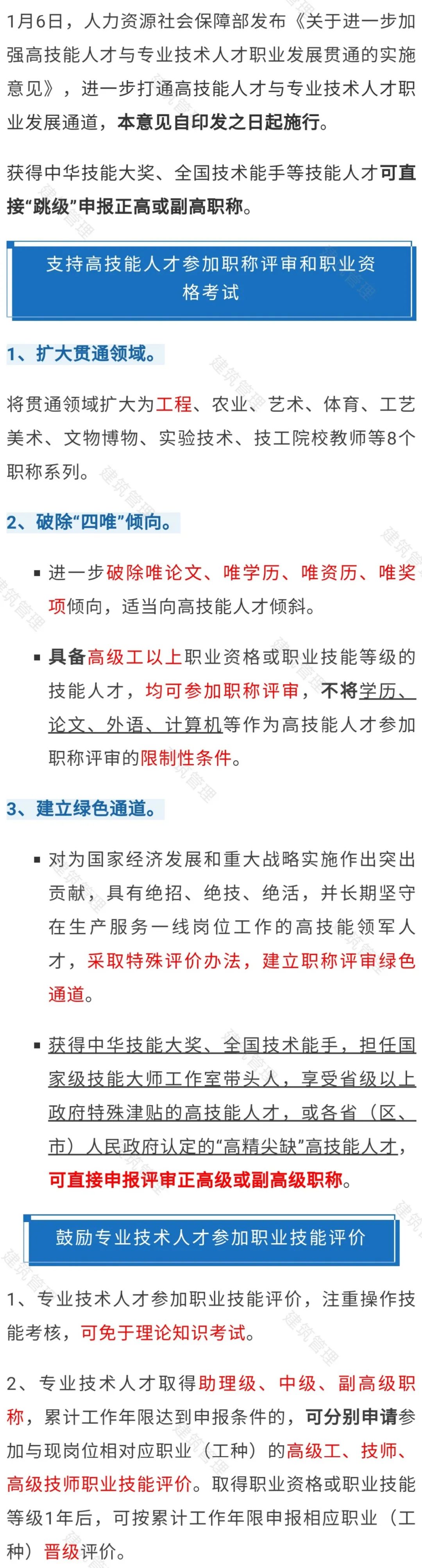 《意见》的出台,将进一步破除束缚高技能人才发展的体制机制障碍,打破职业技能评价与专业技术职称评审界限,畅通高技能人才的职业通道。