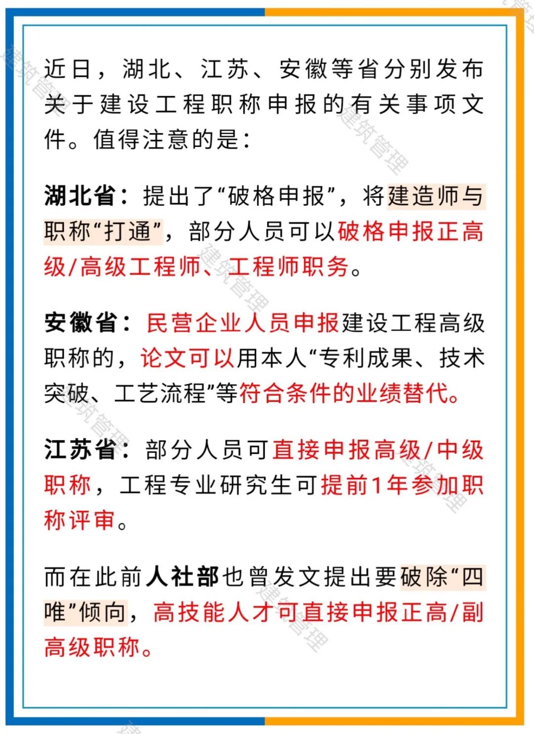 为进一步做好建设工程职称申报工作,更好为广大专业技术人员提供服务和指导,根据《安徽省建设工程专业技术资格评审标准条件》(建人〔2019〕87号,以下简称《标准条件》)等有关规定,经商省人力资源社会保障厅同意,结合我省建设工程实际,现就职称申报有关事项进一步明确如下: