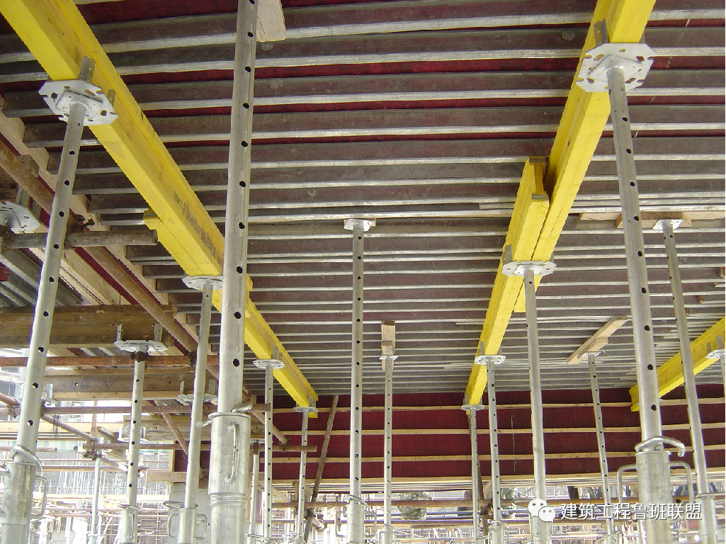 ① 狭窄模板同混凝土接触,可调支撑头,独立式钢支撑