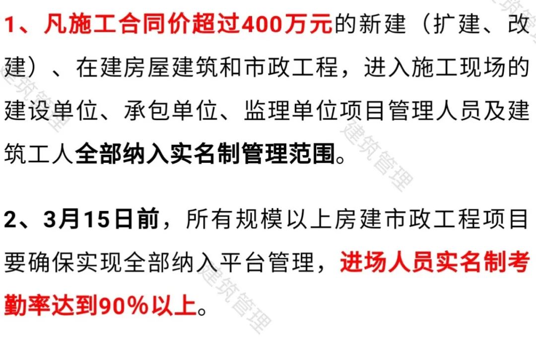 400万以上项目必须实名管理!项目经理到岗率不得低于70%!