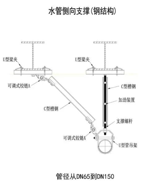 3、水平管线在转弯处0.6m范围内须设置侧向抗震支撑。