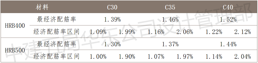 设计人员需根据市场上的材料价格、混凝土强度及钢筋的强度选择适当的经济配筋率。