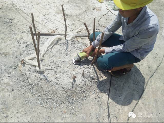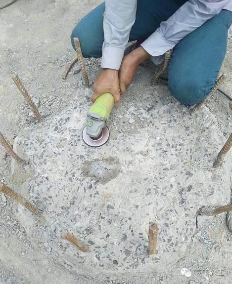 工人师傅处理桩头打磨的现场见证