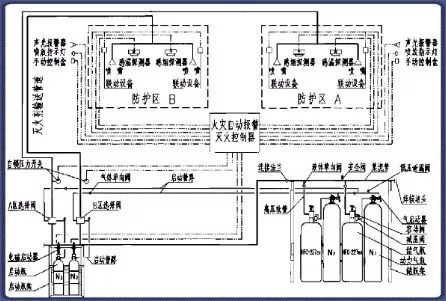 该系统由灭火剂储存装置、总控阀、驱动器、喷头、管道超压泄放装置、信号反馈装置、控制器等组成。