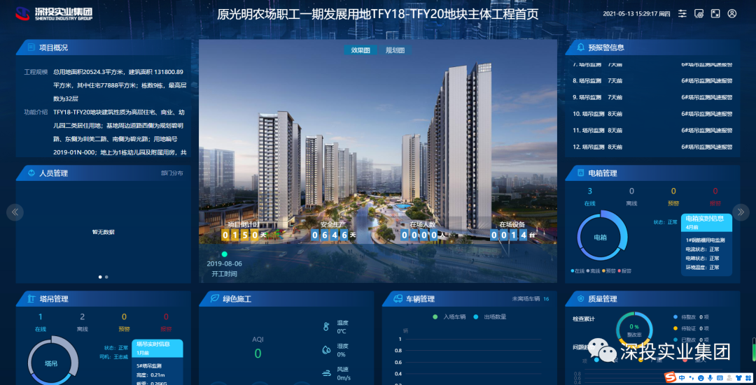 科技特别是信息技术的应用是贯彻绿色理念,实现绿色建造目标的的基础和支撑。深投人大力推动5G、物联网、人工智能等在施工管理中的应用,提高工程质量和管理效率,信息化管理水平大大提升。