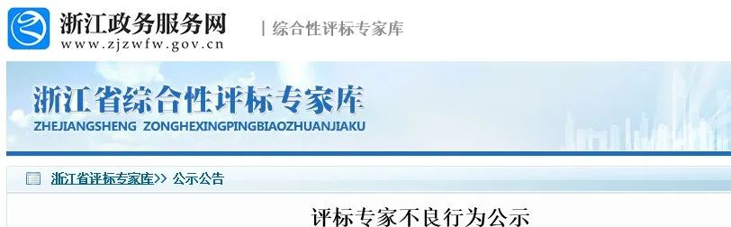 5月25日,浙江省综合性评标专家库官网发布一则《评标专家不良行为公示》。内容如下: