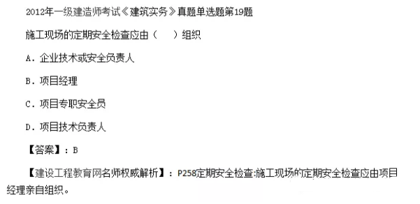 关于定期安全检查应由谁负责组织的问题,比如以下这个建造师的例子: