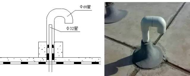 排气出口应埋设排气管,排气管应设置在结构层上;穿过保温层的管壁应打排气孔,屋面排气孔应做到做法一致、排列整齐、外形美观,应设置在纵横分隔缝的相交点处。