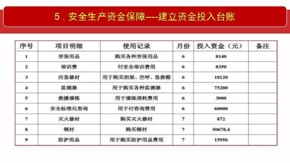 企业应将安全生产投入纳入年度生产经营计划和财务预算,足额提取并按规定使用安全生产费用,保障安全生产设备设施、风险辨识管控、隐患排查整治、设备维修保养、安全教育培训、劳动防护用品配备、保险、应急演练、事故救援等安全生产支出。高危行业企业应按照国家有关规定投保安全生产责任险,其他企业应积极投保。企业应按照法律法规和国家标准、行业标准,健全安全生产标准化工作体系和运行机制,积极开展以岗位达标、专业达标和标准化创建等为内容的安全生产标准化建设,建立完善本单位安全生产例会、例检、隐患排查治理等各项安全生产制度和操作规程,落实强制性安全生产标准规范,确保各生产环节和相关岗位工作符合法律、法规、标准、规程要求,实现安全行为规范化。