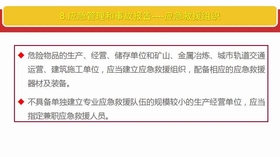 企业应针对本单位可能发生的生产安全事故特点及危害,制定相应的应急救援预案。建立专职或兼职人员组成的应急救援队伍,不具备单独建立专业应急救援队伍的企业,应与邻近建有专业救援队伍的企业签订救援协议,或者联合建立专业应急救援队伍,配备与本企业风险等级相适应的应急救援器材、设备和装备等物资,定期组织应急救援实战演练和人员避险自救训练,使各级各类人员熟悉应急救援预案,熟记岗位职责和应急处置要点,熟练操作应急救援器材和设备、装备,提高现场应急救援能力。