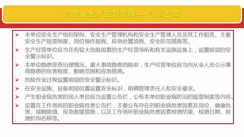 企业董事长、总经理等法定代表人和实际控制人是安全生产第一责任人,对本单位的安全生产工作全面负责,应亲自推动安全生产制度的建立,经常深入一线检查安全生产工作,监督安全生产制度落实,研究解决安全生产突出问题。每年至少向职工大会或者职工代表大会、股东会或者股东大会报告一次安全生产情况,接受职工、股东监督。加强对下属独立法人单位的监督检查,督促其落实安全生产责任。企业必须牢固树立法治观念,从事生产经营活动应依法取得安全生产相关证照和许可,符合法律法规、国家和地方标准或者行业标准规定的安全生产条件,及时主动获取并严格执行与安全生产相关的法律法规标准,依法健全完善安全生产规章规程和安全防范措施,严禁使用国家和省明令淘汰的危及生产安全的设备及工艺,及时淘汰更新陈旧落后的设备及工艺。生产有毒有害物质或发生事故可能影响公众安全健康的高危行业企业,应建立与公众沟通的交流机制,定期公布相关信息,自觉接受社会监督。